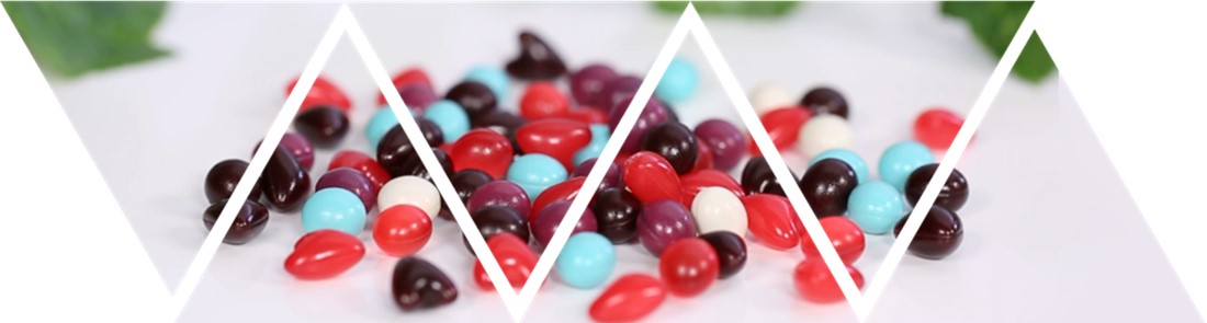 1、產(chǎn)品形態(tài)均為糖/凝膠混合制成的外皮與所其包裹的餡心組成,清甜可口,具有夾心凝膠糖果糖果的甜美與咀嚼口感,顏色和形狀皆可多元化。