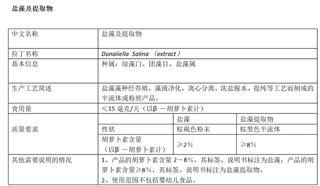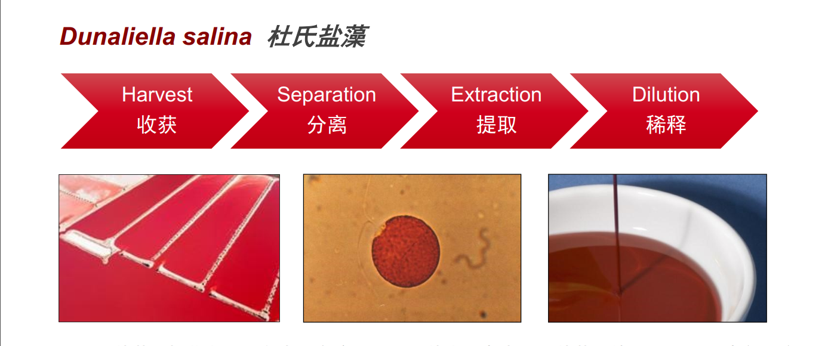 優(yōu)選鹽藻提取物作為β-胡蘿卜素來源。