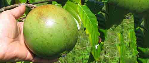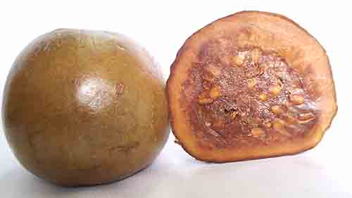 寶樂果粉取自寶樂果,也叫博羅霍,西班牙語為Borojo。它是一種生長在南美洲厄瓜多爾和哥倫比亞熱帶雨林地區(qū)的水果??礃幼用?,其貌不揚,和番石榴差不多模樣,不過個頭稍大。直徑達7-12cm,還沒有成熟時呈綠色,成熟時轉為茶褐色,重量有五六個蘋果那么重,果肉柔軟多籽。味道酸澀粘稠。